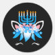 Sticker Rond Hanoukka drôle visage Unicorn pour