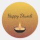 Sticker Rond Happy Diwali Gold Parties scintillant Diya Flamme