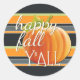 Sticker Rond Happy Fall Yall Citrouille Sur Vibrant Stripes Mot