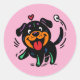 Sticker Rond Happy Funny Cartoon Rottweiler Puppy