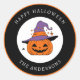 Sticker Rond Happy Halloween Éffrayant Citrouille texte personn