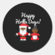 Sticker Rond Happy Holla Days Santa And Mrs Claus Black Christm
