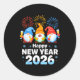 Sticker Rond Happy New Year 2026 Gnome With Fireworks And Champ
