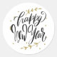 Sticker Rond Happy New Year Modern Calligraphy Wreath Black