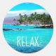 Sticker Rond Hawaii Blue Ocean Green Palm Trees Beach Relax
