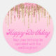 heureux anniversaire or rose goutte parties scintillant luxe Classic Round Sticker, personnalisée