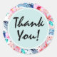 Sticker Rond Hibiscus hawaïens tropicaux et Merci en feuille de