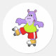 Sticker Rond Hippo comme patineur avec patins en ligne