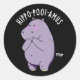 Sticker Rond Hippo-poot-amus Drôle Farting Hippo Pun Dark BG