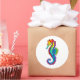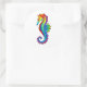 Sticker Rond Hippocampe polygonal arc-en-ciel