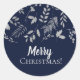 Sticker Rond Hiver Bleu & Silver Feuille vacances botaniques