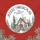 Ajoutez une touche finale festive à vos cadeaux de fête ou enveloppes de cartes de vœux avec cet autocollant de Noël charmant. Le design présente une cabane d'hiver aquarelle confortable nichée parmi les pins et les baies de houx, avec des détails enneigés, une couronne sur la porte et de la fumée s'élevant de la cheminée, apportant une atmosphère chaleureuse et hivernale à toute célébration.