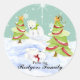PALETTE DE COULEUR : tendance moderne de Noël d'Aqua Bleu et Blanc avec citron jaune, or, vert et rouge. COLLECTION DE DESIGN : Avec le texte "From the Rodgers Family" qui peut être facilement personnalisé avec votre nom de famille personnalisé en utilisant le champ simple modèle, il s'agit d'un sticker à thème fantaisiste, amusant, Noël et Hiver, sceau ou ensemble de décoration qui a été fait d'aquarelle peinte à la main d'Audrey Jeanne Roberts. Les sapins de Noël sont décorés d'une guirlande rouge drapée, de surpieux tourbillonnants en tas de neige avec des flocons de neige faits main tombant dans l'arrière - plan et des bébés ours polaires jouant avec les arcs autour du cou. Ce design est disponible sur une large gamme de produits.