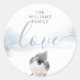 Personnalisez votre nom sur cet autocollant chic de vacances avec un oiseau sur une scène hivernale arrière - plan de bois.