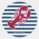 Sticker Rond Homard rouge nautique Monogramme Bleu Bleu Blancs