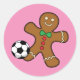 Illustration d'un heureux homme en pain d'épices avec une cravate arc verte jouant au football ou au football et essayant de faire un but. Profitons de cette saison de Noël avec de la bonne nourriture, des cadeaux et passer du temps en famille et entre amis. Ce design est une combinaison de sport et de Noël.