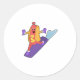 Sticker Rond Hot-dog as Snowboarder with Sonowboard