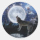 Sticker Rond Howling Grey Wolf & Moon