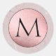Faux Pink Foil - Monogramme Classic Round Sticker avec arrière - plan rose de texture en marbre doré. Le design circulaire le rend parfait comme joint d'enveloppe.