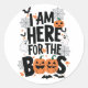 Un design festif et animé, parfait pour les amateurs d'Halloween. L'expression "I'AM HERE FOR THE BOOS" est écrite en caractères gras et ludiques.Le design général exsude le plaisir et l'excitation d'Halloween, ce qui en fait un choix irrésistible pour ceux qui aiment la saison éffrayante.