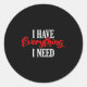 Sticker Rond I Have Everything I Need Valentine´s Day Love Coup
