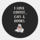 Sticker Rond I Love Coffee Cats Livres Lecture Livre