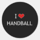 "I Love Handball", lettrage blanc sur arrière - plan noir, autocollant rond.