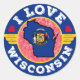I Love Wisconsin State Map and Flag. S'inspirant du drapeau de l'État, ce design présente un code couleur bleu marine, rouge et or, ainsi que des coeurs rouges. Ceci encadre le drapeau complexe, qui représente les armoiries de l'État à l'intérieur de la carte de l'État. Avec la typographie en détresse cool avec l'expression 'I LOVE WISCONSIN'.