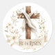Cet autocollant sur le thème de Pâques a une croix avec les mots "Il est ressuscité" en marron.