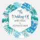Sticker Rond Île tropicale Palm Leaf Blue Beach Mariage