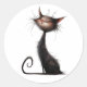 Un chat noir fantaisiste et scrupuleux avec une expression fière et suffisante. Sa fourrure est impeccable et filante, avec des boucles délicates au bout de ses oreilles et de sa queue, lui donnant un charme malicieux mais attachant. Les yeux du chat sont fermés, et il porte un sourire satisfait, presque suffisant, suggérant la confiance et l'humour. Les caractéristiques exagérées, dont son long cou fin et sa tête surdimensionnée, ajoutent à l'attrait décalé et stylisé de l'oeuvre.
