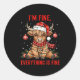 Sticker Rond Im Fine Everything Is Fine Funny Christmas Highlan