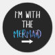 Sticker Rond I'm With The Mermaid Funny Lazy Mermaid Halloween