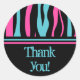 Belle ronde merci autocollants dans les bandes punk zebra des années 80 rétro en noir, turquoise, et rose chaud. Ils correspondent à 16 produits sucrés dans mon magasin.