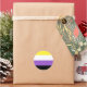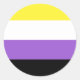 Les personnes non binaires peuvent s'identifier comme ayant deux ou plusieurs sexes, n'ayant pas de sexe, se déplaçant entre les sexes ou ayant une identité de genre fluctuante, ou être du troisième sexe ou d'autres sexes, une catégorie qui comprend ceux qui ne placent pas de nom à leur genre. Chaque couleur de bande représente différents types d'identités non-binaires : Jaune pour les personnes qui s'identifient en dehors du binaire de genre, blanc pour les personnes non-binaires avec plusieurs sexes, violet pour celles avec un mélange de sexe masculin et féminin, et noir pour les individus de genre.
