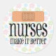 Le design Make it Better de l'infirmière mignonne comprend un bandage adhésif couleur chair pour les premiers soins et les soins des plaies. Quelques arrière - plans de fleurs aux couleurs pastel en rose, vert et autres couleurs douces. Express votre gratitude à votre infirmière préférée, votre étudiant en soins infirmiers, ou faire une déclaration sur la semaine de l'infirmière, à l'obtention du diplôme d'études médicales, ou quand vous allez au bureau du médecin. Tous les Designs Copyright © 2012 www.CuteComfy.com Ce design est disponible en collection complète!