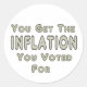 Vous obtenez l'inflation pour laquelle vous avez voté est un commentaire sur la politique gouvernementale et financière et l'effet sur les gens qui ont peut-être voté pour l'état actuel des choses. Voir aussi Bidenflation.