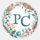 Sticker Rond Initiales de la couronne d'Eucalyptus Pinecone en