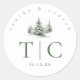 Sticker Rond Initiales de mariage d'hiver rustique Forest Green