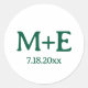 Scellez vos enveloppes mariages et traitez vos sacs avec cet autocollant vert et blanc minimaliste qui présente les initiales de votre fiancé et de votre mariage et la date de votre dans une police serif élégante.