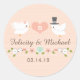 Ajoutez le monogramme du nom de famille de la mariée et du marié au coeur de cette fête de mariage à thème inséparables doux préférez le étiquette et l'autocollant avec deux colombes blanches. L'une porte le chapeau d'un marié gris et l'autre porte un voile de mariée fleuri. Des fleurs blanches sur des branches d'arbres, des coeurs de couleur corail pâle, des fleurs rose et marron croustillantes et un rose bleu aqua et tulipe minuscule composent la couronne de laurier. Arrière - plan à l'apparence légèrement texturée, dans une étoffe rose vif. Customisez-le avec les noms de la mariée et du marié et la date de l'événement. Oeuvre © Chrissy H. Studios, LLC. Tous droits réservés.