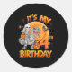 Sticker Rond Its My 4th Birthday Dinosaur Skeleton Mummy Hallow