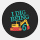 Sticker Rond J'Ai Creusé Être 6 Excavateur Anniversaire Garçon