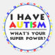 Sticker Rond J'Ai L'Autisme. Quel est ton super pouvoir ?