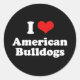 Sticker Rond J'Aime Les Bulldogs Américains