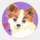 Sticker Rond J'aime mon long manteau Chihuahua