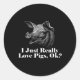 Sticker Rond J'Aime Vraiment Les Cochons Ok