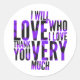 Le design parfait violet et noir affirmant haut et fort : J'AIMERAI QUI J'AIME BEAUCOUP LE MERCI. Stick'em partout et partager!