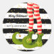 Les petits autocollants comportent des jambes ludiques en collants rayés et des bottes vertes sur des rayures noires et blanches et des points d'or et comprennent votre salutation personnelle et vos noms. CORRESPONDRE des articles dans notre magasin.
