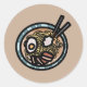 Cute ramen noodles soup Japanese foodie cartoon. Pour Ramen Lovers everywhere. Cute bowl of noodles with soup and pork style graphc illustration originale. Foodie design.